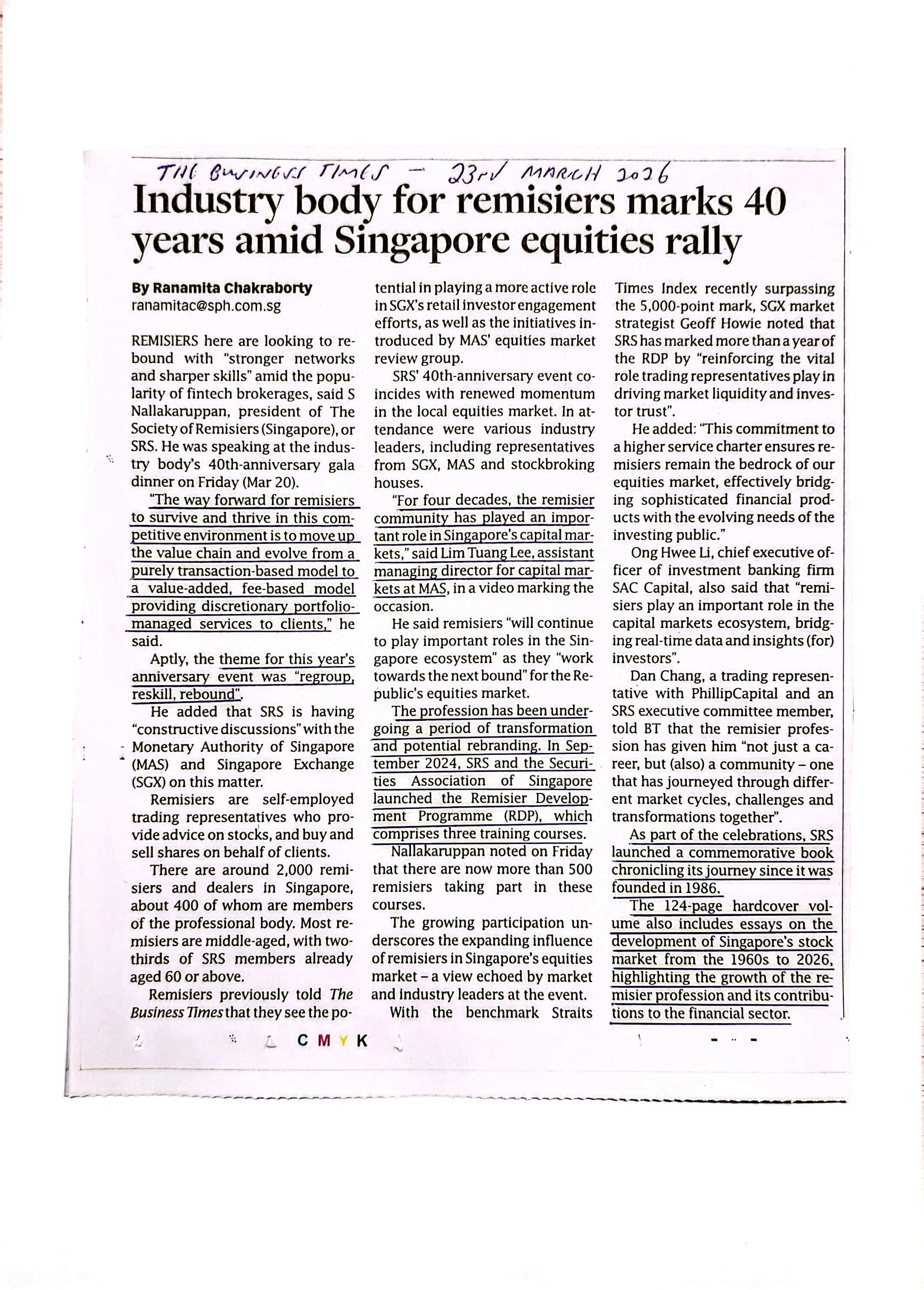 The Business Times : SRS 40th Anniversary Dinner - 23rd March 2026