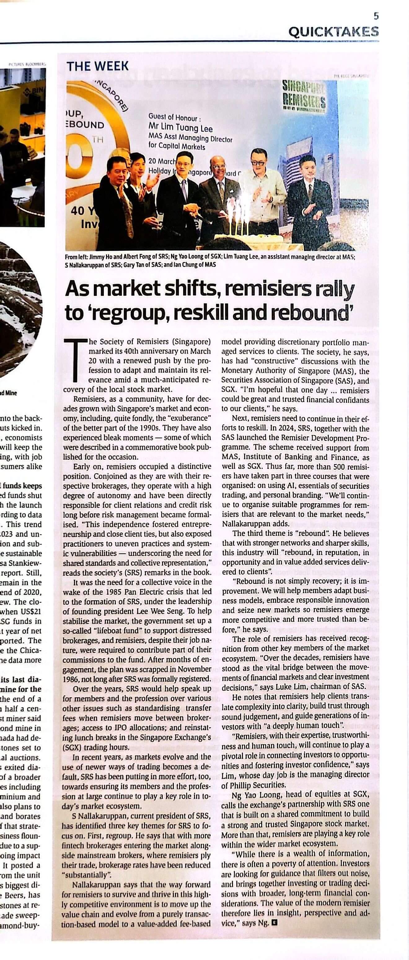 SRS President's Message : 1. 60th National Day Dinner 2. BT Article on the Transformation of the Remisier Profession
